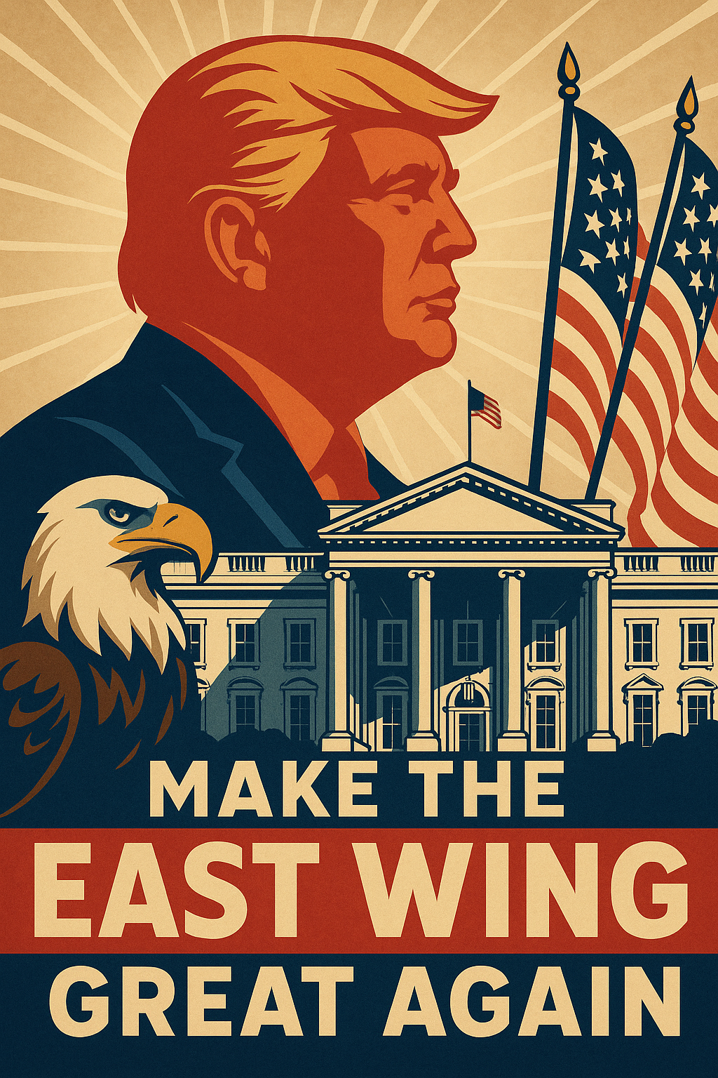 Make the East Wing Great Again If there’s one thing Donald Trump has never been afraid to do, it’s take bold action. From rebuilding America’s economy to rebuilding our borders, his leadership has always been about making things better, stronger, and greater than before. Now, that same mindset is taking shape right at the heart of Washington — inside the White House itself. A New Vision for a Historic Space The East Wing has stood for more than a century. It’s where tours begin, where First Ladies made history, and where generations have walked through its corridors in awe. But just like America’s infrastructure, the old East Wing had seen better days. It was cramped, outdated, and ill-equipped for today’s world. So, when President Trump announced a privately funded renovation project to replace it with a new 90,000-square-foot ballroom and event space, critics jumped to their usual conclusions. But here’s the truth: it’s not about tearing down history — it’s about elevating it. Built for America’s Future, Not Its Past This isn’t a taxpayer-funded vanity project. The Trump Administration made clear that private donors are footing the bill — a first for a major White House expansion. That means no burden on Americans, no hidden costs, and no excuses for standing still. The new East Wing will finally give America a venue worthy of hosting state dinners, international summits, and historic ceremonies — all under one roof. The current East Room only holds about 200 guests. The new ballroom will hold close to 1,000. Think about that: more room for diplomacy, more room for business, and more room for America to shine on the world stage. Critics Will Always Complain — Builders Build Of course, the usual media suspects rushed to call it “extravagant” and “unnecessary.” But that’s what they said about everything Trump has ever built — from skyscrapers to policies that reshaped the economy. Here’s what they miss: great nations invest in themselves. They don’t apologize for success. They showcase it. Every chandelier, every marble column, every piece of craftsmanship going into the new East Wing sends one message to the world — that America is back to being proud of what it builds. A Symbol of Renewal Beyond the architecture, this renovation is symbolic. It represents something bigger than a ballroom — it represents renewal. It’s about restoring pride in the People’s House, proving that the White House can be both historic and forward-thinking. For decades, presidents talked about “modernizing government.” Trump is actually doing it — and doing it with private funding, American materials, and world-class design. The People’s Ballroom When it’s finished, the East Wing won’t just be another addition to the White House. It’ll be a stage for America’s greatness. A space that honors our past while embracing our future — built not by bureaucrats, but by believers in the American dream. As Trump himself might say, “We’re not just making the East Wing bigger — we’re making it beautiful a gain.” RETURN HOME