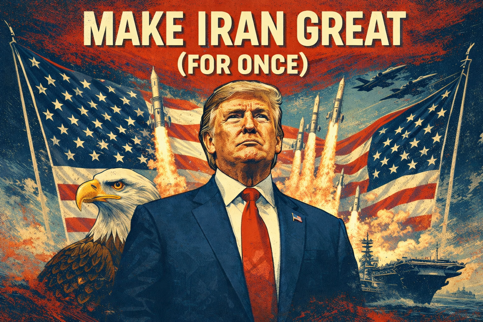 Make Iran Great ο»Ώ (For Once) For years, Iran has been one of the most difficult and dangerous challenges facing the United States and its allies. The Iranian regime has funded terrorist groups, threatened Israel, destabilized the Middle East, and pursued aggressive nuclear ambitions. Now, under President Donald Trump’s leadership, the United States has taken decisive action. The current military operation targeting Iranian military infrastructure is part of a broader strategy designed to protect American interests, defend allies, and bring long-term stability to the region. Unlike previous administrations that often relied on diplomacy without consequences, Trump has taken a firm position that aggression from hostile regimes will not go unanswered. Strength Through Leadership President Trump has consistently argued that peace comes through strength . His administration has increased military readiness, strengthened alliances in the region, and made it clear that the United States will defend its interests and its allies. The current operation is aimed at degrading Iran’s ability to threaten regional security. Key targets have included military facilities, missile infrastructure, and assets connected to Iran’s Revolutionary Guard. Supporters of the operation say this strategy sends a clear message: the era of unchecked Iranian aggression is over. At the same time, Trump has emphasized that the United States is not at war with the Iranian people. Supporting the Iranian People One of the key themes of Trump’s messaging has been the distinction between the Iranian regime and the Iranian population . Iran has a rich culture, a highly educated population, and enormous economic potential. Yet decades of authoritarian rule and economic mismanagement have left many Iranians struggling under sanctions, inflation, and political repression. Trump has repeatedly suggested that Iran could become a prosperous and successful country if its leadership chose a different path. That idea is where the phrase “Make Iran Great (For Once)” comes from. It reflects the belief that Iran’s future should be defined not by its current regime’s hostility toward the West, but by the potential of its people. Restoring American Deterrence For years, critics argued that U.S. deterrence in the Middle East had weakened. Attacks on shipping lanes, missile launches by Iranian-backed groups, and threats toward American bases were often met with limited responses. The current administration has shifted that approach.Trump’s strategy has been straightforward: when American interests are threatened, the response will be decisive and overwhelming. This shift has already had an impact. Military analysts say the operation has disrupted key Iranian capabilities and forced the regime to reconsider its next moves. Just as importantly, it has reassured U.S. allies that America remains committed to regional stability. A Path Forward While the military operation is dominating headlines today, the long-term goal is not endless conflict. The ultimate objective is stability. President Trump has repeatedly said that Iran has a choice: continue down the path of confrontation, or move toward reform and cooperation with the international community. If Iran chooses the latter, the country could unlock massive economic growth, rebuild relationships with global partners, and allow its citizens to experience greater freedom and prosperity. In other words, Iran could finally begin living up to its true potential. Final Thoughts The situation in the Middle East remains complex, and the coming months will likely shape the future of the region for years to come. But one thing is clear: the Trump administration is pursuing a strategy built on strength, deterrence, and the belief that peace is best secured when adversaries understand that the United States will defend itself and its allies. For supporters of the president, the message is simple. America is strong again. And if the Iranian regime chooses a different path, perhaps someday Iran can be great as well. RETURN HOME